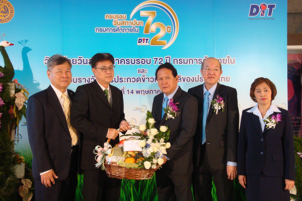 ณ บริเวณโถง ชั้น ๓ อาคารสำนักงานปลัดกระทรวงพาณิชย์ ได้ร่วมแสดงความยินดีและมอบทุนสนับสนุนกองทุนสวัสดิการข้าราชการและลูกจ้างกรมการค้าภายใน ให้แก่ นายสมชาติ สร้อยทอง อธิบดีกรมการค้าภายใน เพื่อร่วมเป็นขวัญและกำลังใจแด่เจ้าหน้าที่กรมการค้าภายในปฎิบัติงานได้อย่างมีประสิทธิภาพยิ่ง ยิ่งขึ้น