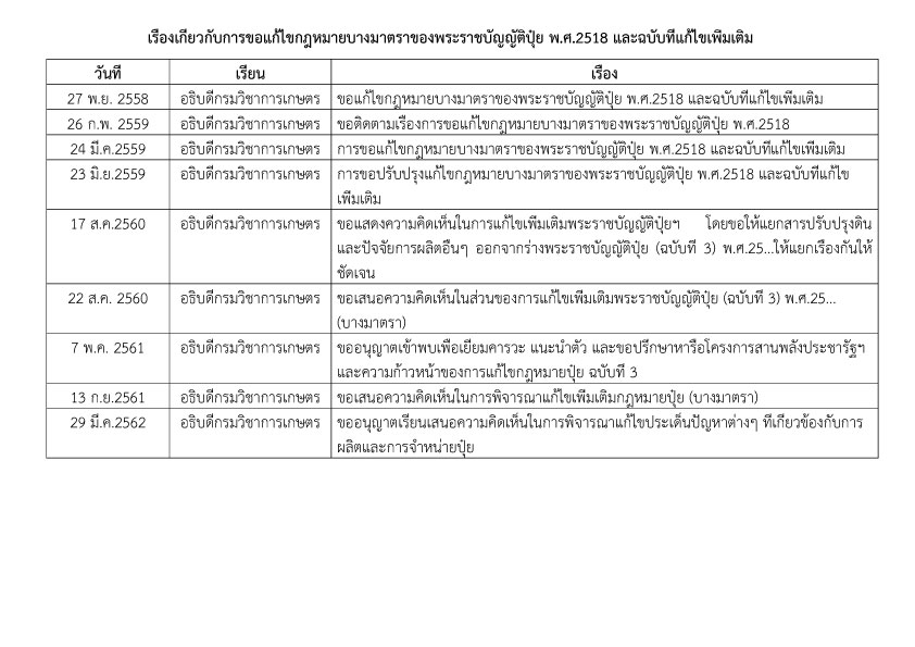 การขอแก้ไขกฎหมายบางมาตราของพระราชบัญญัติปุ๋ย พ.ศ.2518 และฉบับที่แก้ไขเพิ่มเติม